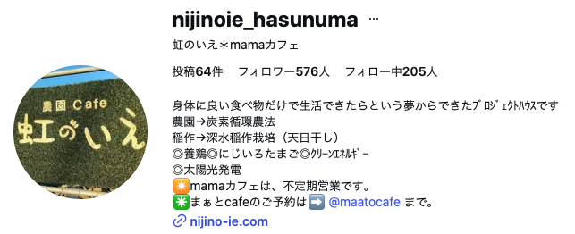 虹のいえ“mama cafe” の場所にて『上質でカラダに優しい安心安全の“食”をみなさんに』というテーマに想いを繋ぎ『まぁるくハートをつつみこむようなホッとする場所をつくりたい!』という気持ちからできたスペシャルなCafeです。
